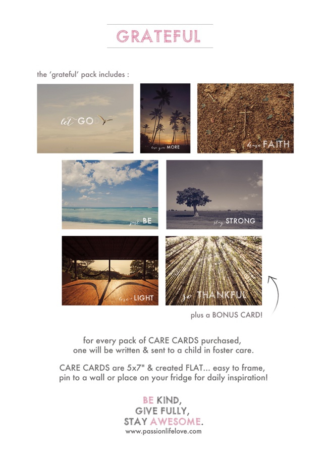 Check out the images to the left to view the CARE CARDS included in the 'GRATEFUL' pack.