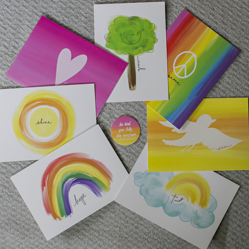 Each pack comes with 7 unique cards & set of 'BE KIND, GIVE FULLY, STAY AWESOME' stickers!